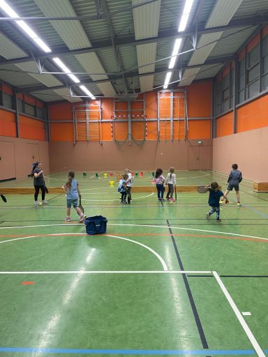 Die kleinsten des MTC üben im Winter in der Grundschule. Mit Ball-und Bewegungsübungen soll der Einstieg in Tennis erleichtert werden